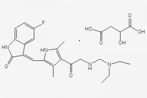 | Chemical name: | N-(2-(Diethylamino)ethyl)-5-((Z)-(5-fluoro-1,2-dihydro-2-oxo-3H-indol-3-ylidene)methyl)-2,4-dimethyl-1H-pyrrole-3-carboxamide (2S)-hydroxybutanedioate |