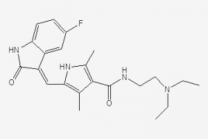 | Chemical name: | N-(2-(Diethylamino)ethyl)-5-((Z)-(5-fluoro-1,2-dihydro-2-oxo-3H-indol-3-ylidene)methyl)-2,4-dimethyl-1H-pyrrole-3-carboxamide |