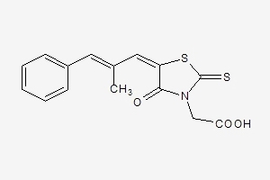 | Chemical name: | 5[(1Z,2E)-2-Methyl-3-phenyl-2-propenylidene]-4-oxo-2-thioxo-3-thiazolidineacetic acid |